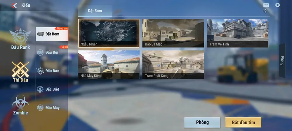 Người chơi sẽ được tiếp cận đầy đủ các chế độ chơi từ đấu rank đến thi đấu, đặt bom C4 đến đấu đội đối kháng. Bên cạnh đó là các kiểu chơi đặc biệt như đấu sniper, đấu dao, đấu tập với bot.