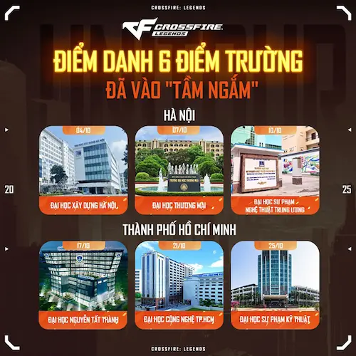 Tựa game huyền thoại vượt thời gian Crossfire: Legends đã có mặt tại 6 điểm trường ở cả Hà Nội và TP. HCM với nhiều hoạt động giao lưu, trải nghiệm, tặng quà vô cùng chất chơi. Các sinh viên đã rất hào hứng khi tham gia nội dung giao lưu của NSOC 2025 nói chung và Crossfire: Legends nói riêng. Ước tính đã có hơn 3000 sinh viên tham dự hoạt động thi đấu C4 tại các booth trải nghiệm Crossfire: Legends.
