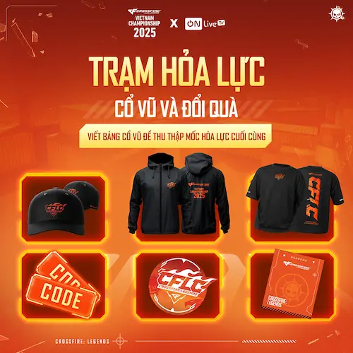 Ngoài việc xem giải đấu chung kết, Crossfire: Legends Vietnam Championship còn có hoạt động booth thi đấu game tại booth với quà tặng hấp dẫn là loạt ấn phẩm và code game độc quyền cực xịn xò như code M4A1 Born Beast, code AK Beast cùng hàng trăm Áo khoác, áo thun, nón và nhiều vật phẩm độc quyền khác. Hoạt động booth dự kiến sẽ kéo dài từ 13:00 – 16:30 và trận chung kết quan trọng nhất của giải đấu sẽ diễn ra từ 18:00 tới 22:00 trong ngày 21/12/2025.