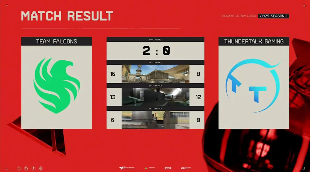 Team Falcons với bản lĩnh và kinh nghiệm dày dặn đã thể hiện sức mạnh vượt trội và giành chiến thắng chung cuộc 2-0. Tuy nhiên, ThunderTalk Gaming cũng đã chứng tỏ mình là một đối thủ đáng gờm, khi liên tục tạo ra những pha giao tranh gay cấn, đẩy trận đấu lên cao trào.