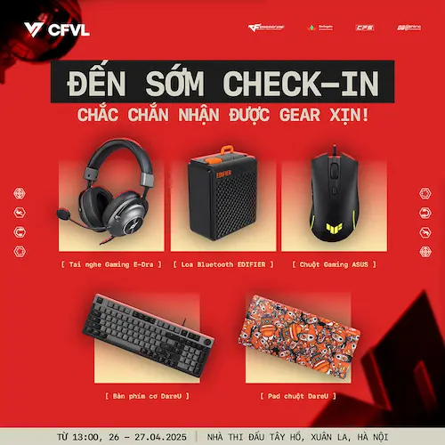 Dù đến vào bất kỳ thời điểm nào trong sự kiện, mỗi khán giả tham dự chung kết CFVL 2025 S1 đều sẽ nhận được bộ quà tặng độc quyền, bao gồm: