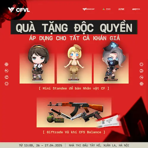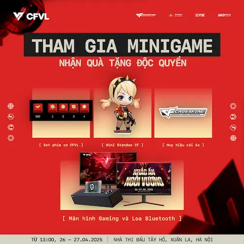 Đây là cơ hội tuyệt vời để người hâm mộ eSports nói chung và cộng đồng CrossFire nói riêng hòa mình vào không khí cuồng nhiệt của trận chung kết CFVL 2025 S1, đồng thời mang về những phần quà hấp dẫn. Hãy đến và cùng chúng tôi tạo nên một ngày chung kết bùng nổ và đáng nhớ!