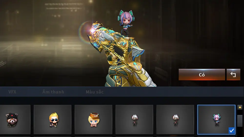 • Hộp tùy chọn vũ khí, cho phép người chơi chọn 1 trong 4 món: