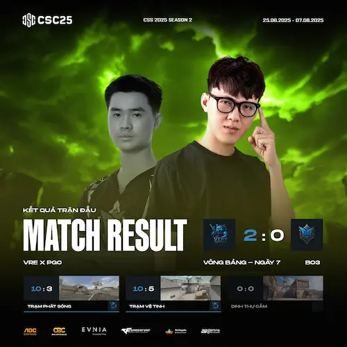 Với những diễn biến hấp dẫn như vậy, cuộc đua giành vé vào vòng trong của CSC 2025 S2 hứa hẹn sẽ còn nhiều kịch tính và bất ngờ. Hãy cùng chờ đón những màn trình diễn đỉnh cao tiếp theo từ các đội tuyển.