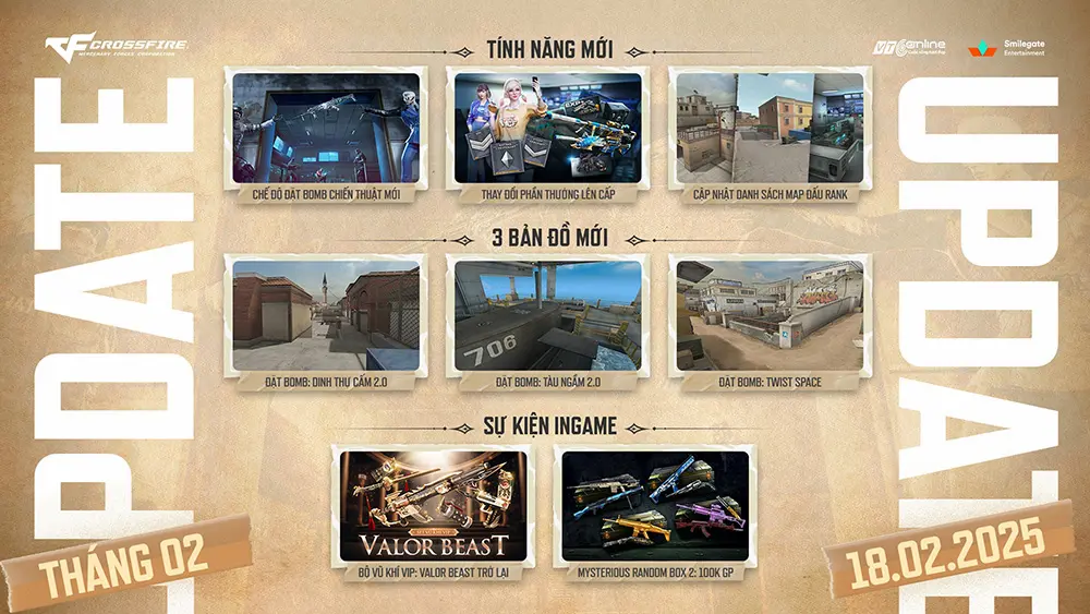 Ngày 18/2 này, Đột Kích sẽ đưa ra đợt Big Update cung cấp thêm nội dung mới kèm theo làm mới một số hạng mục trong game để tăng cường trải nghiệm cho game thủ. Trong đó có nhiều hạng mục đáng quan tâm dành cho người chơi.