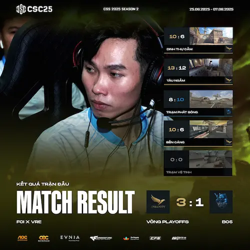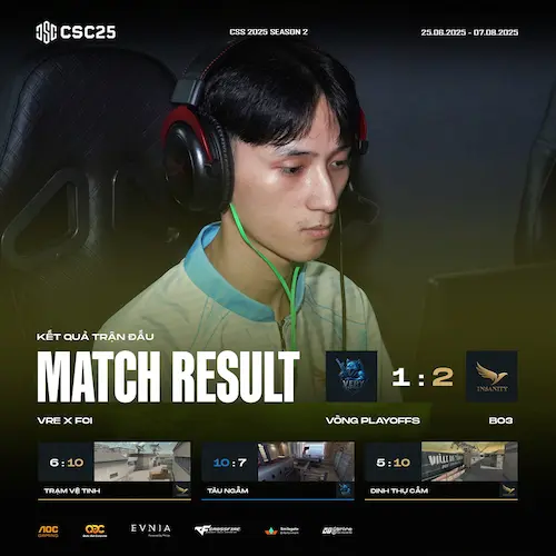 Ngay từ trận bán kết nhánh thắng, FAL Insanity đã tạo nên một cơn địa chấn khi đối đầu với Very Esports, đội tuyển được mệnh danh là “ông vua vòng bảng” CSC với phong độ hủy diệt xuyên suốt mùa giải. Mặc dù bị đánh giá thấp hơn, các chàng trai trẻ của FAL Insanity đã thể hiện một phong độ đỉnh cao. Họ không chỉ vượt trội hơn Very Esports về tinh thần thi đấu mà còn chứng tỏ sự lấn át về kỹ năng cá nhân.